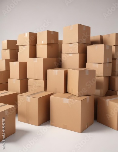 Several empty brown cardboard boxes isolated on white , preservation, stack, compost