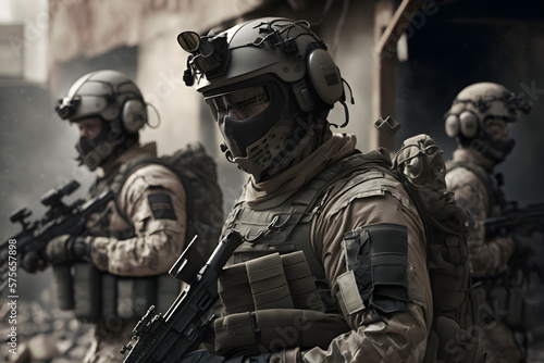 soldier, war, army, military, gun, armed, gear, combat, uniform, weapon, warrior, rifle, camouflage, helmet, special, soldier, police, mask, protection, fight, man, swat, force, battle, ai, generative