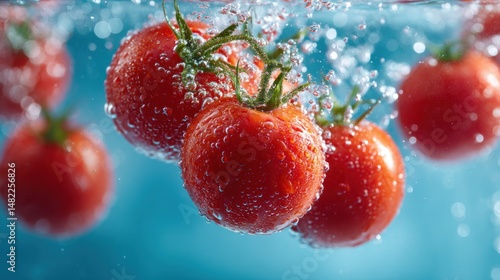 tomatoes, water, red, bubble, fresh, clean, washing, produce, food, healthy, submerged, liquid, water, blue, floating, ripe, wet, vibrant, refreshing, ingredient, culinary, cooking, raw, diet, nourishment, vegetarian, vegan, background, closeup, splash, droplet
