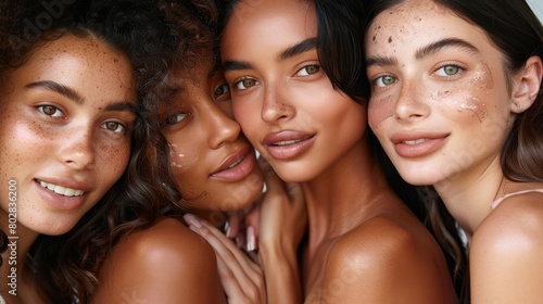 woman, stunning, different, nationality, make-up, looking, camera, posing, together, isolated, beige, background, beauty, diverse, ethnicity, fashion, portrait, group, attractive