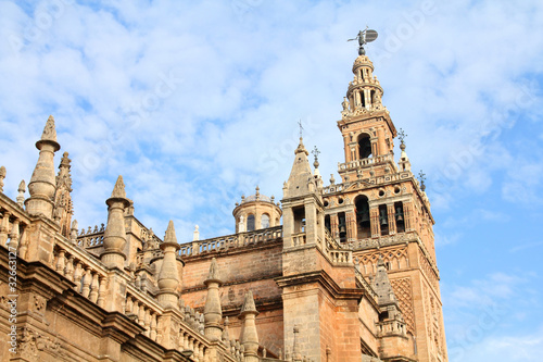 spain, seville, seville, landmark, architecture, building, famous, travel, tour tourism, sightseeing, exterior, europa, european, andalusia, spanish, cathedral, unesco, artistic, detail, element, statue, sculpture, religion, religious, art, pinnacle, tower, church