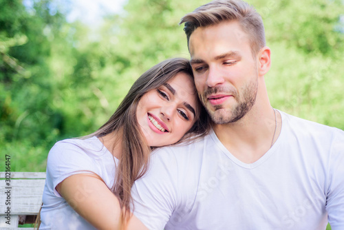 Sexual attraction. Couple in love. Trust and intimacy. Sensual hug. Love romance concept. Romantic date. Handsome man pretty girl in love. Attractive couple. Relaxing with darling. Lovers cuddling