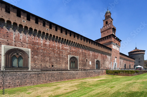 milan, castellón, castle, italy, milan, architecture, lombardia, italian, old, ancient, european, historic, europa, landmark, building, mediaeval, palace, blue, art, antique, city, tower, church, historical building, brick, sculpture, arch, fountain, classic, attraction, wall, fortress