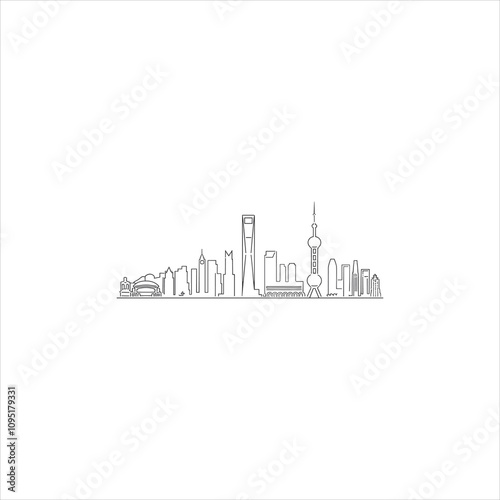 shanghai, china, skyline, line art, minimalist, illustration, iconic, architecture, urban, travel, landmark, silhouette, black-and-white, simple, modern, graphic design, art, design, city, graphic, vector, drawing, tower, town, construction, business, icon, city landscape, building