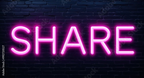 share, word, lettering, glowing, neon, light, dark, brick, wall, background, signs, concept, night, illustration, illuminated, shop, light, food, text, signage, red, conceptual, neon sign, business