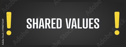 Shared Values. A blackboard with white text. Illustration with grunge text style.