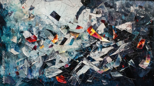 Shattered glass reflecting frozen moments art gallery abstract artwork contemporary environment close-up viewpoint