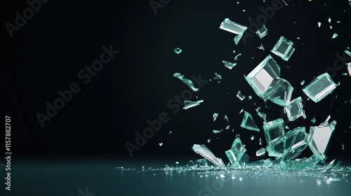 Shattering glass action indoor studio high-speed photography dark environment close-up view fragility concept