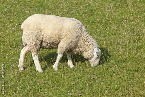 Sheep on dike, Strucklahnungshoern, Nordstrand, North Friesland, Schleswig-Holstein, Germany, Europe