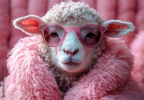 Sheep with Sunglasses Against Pastel Background, Funny Animal Concept, Photorealistic and Detailed