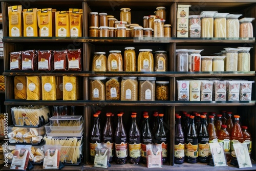 Shelves filled with various types of pasta, sauces, and Italian specialties