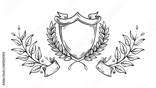 shield, crest, laurel, chaplet, leaf, banner, heraldic, emblem, vintage, decorative, floral, elegant, design, element, vector, laurel wreath