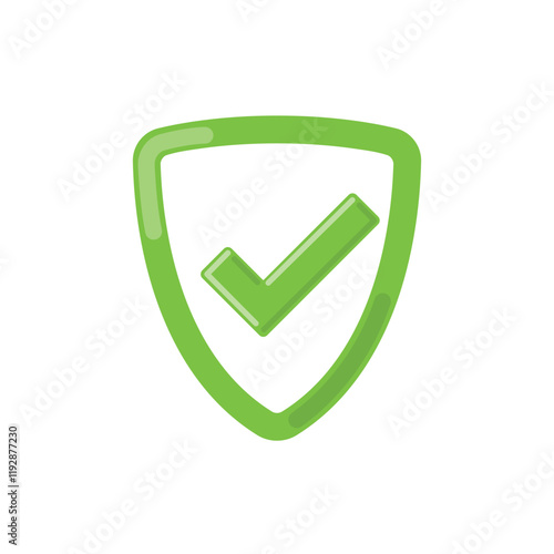 Shield with check mark icon in flat style isolated on white background. Vector illustration.