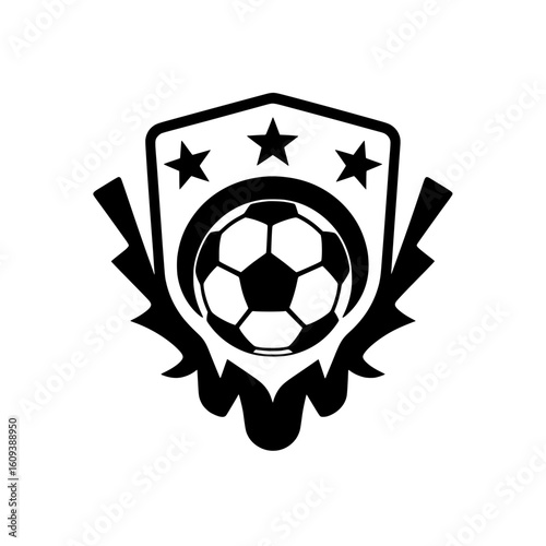 soccer, logotype, vector, emblem, football, sport, shield, team, club, badge, icon, graphic, design, illustration, star, award, tournament, championship, league, ball, game, competition, dynamic, mascot, symbol, brand, branding, element, concept, template, digital, art, drawing, winner, champion, success, victory, professional, banner, ribbon, black, white, isolated, background, outline, cup, play, goal, activity