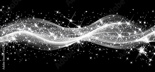 Shimmering abstract texture with sparkling particles and a glittering dust trail on a dark background, like snow