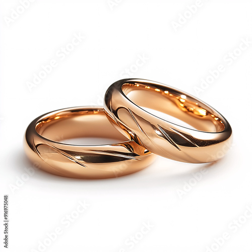 Shimmering Elegance: Close-up of Luxurious Gold Wedding Rings on White Background