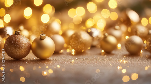 Shimmering gold bokeh lights, softly blurred with a rich, warm glow