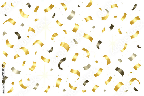 Shimmering golden, silver confetti cascading against transparent backdrop, evoking joyful celebration for festive events and party designs