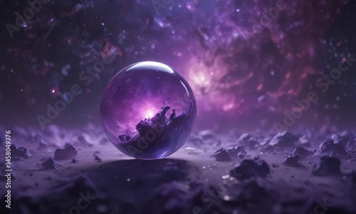 Shimmering orb floats, surrounded by swirling violet nebulae , awe, deep space, majestic