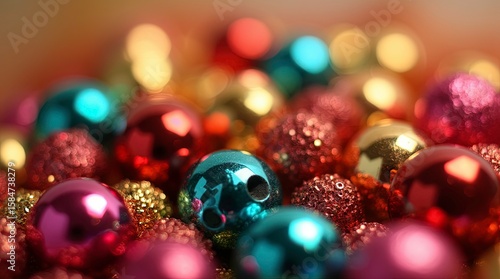 Shiny colored balls abstract background, 3d gold metallic glossy spheres.