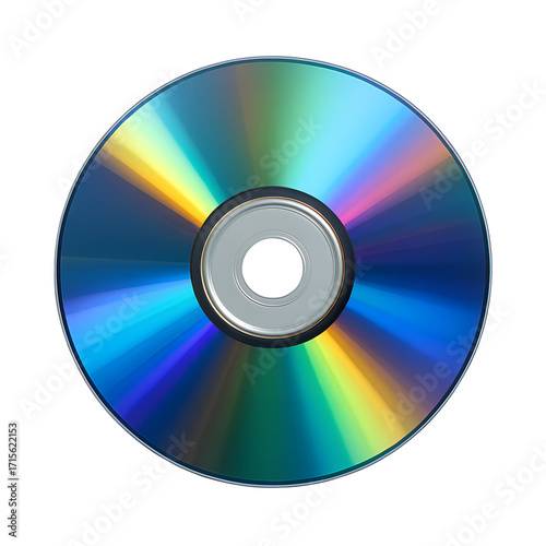 Shiny compact disc with rainbow reflections isolated on transparent background