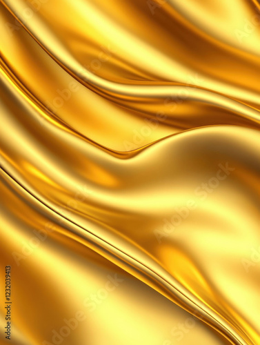 Shiny golden silk fabric waves creating a luxurious and elegant background.