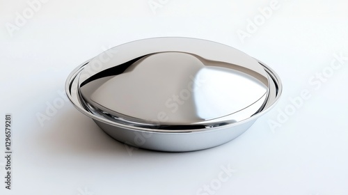 dish, lid, metal, stainless, silver, cookware, kitchen, round, food, cover, bowl, plate, pan, pot, oven, saucepan, serving, vessel, cooking, chef, eatery, catering, home, household, modern, design, product, shiny, reflective, isolated, white, background, closeup, studio, object, image, high-quality, chrome, polished, equipment, utensil, top, view, three-dimensional, rendering, blank