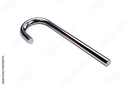 metallic, shiny, candy, cane, shape, curved, metal, rod, polished, three-dimensional, render, object, reflective, chrome, cylindrical, smooth, bright, isolated, dark, background, design, abstract, geometric, modern, industrial, manufacturing, product, tech, closeup, detail, illustration, digital, rendering, minimalist, clean, simple, form, solid, glossy, highlight