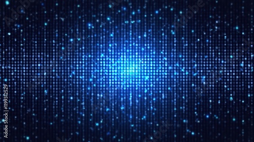Shiny neon background. Glowing blue dotted, blue disco lights halftone texture.