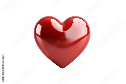 Shiny red heart symbolizing love and affection on a white isolated background.