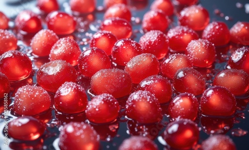 Shiny red jelly candies with sugar coating