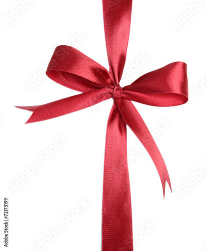 Shiny red ribbon with bow isolated on white