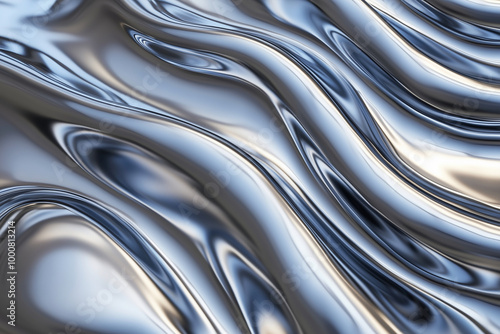 shiny silver fabric with a wave pattern. The image has a sleek and modern feel to it