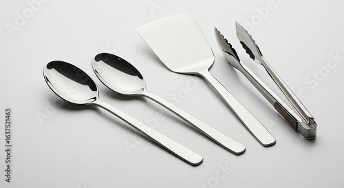 spoon, spoon, spatula, tongs, kitchen, utensil, stainless, steel, metal, shiny, silver, cooking, food, dining, tableware, cutlery, equipment, clean, white, background, isolated, object, object, detail, closeup, elegant, modern, design, minimalist, simple, smooth, polished, reflective, bright, culinary, preparation, serving, eating, utensil, flatware, table, ware, set, collection, arrangement