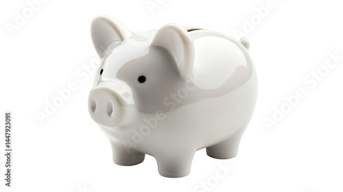 Shiny, white piggy bank on its side, savings container. cut out transparent