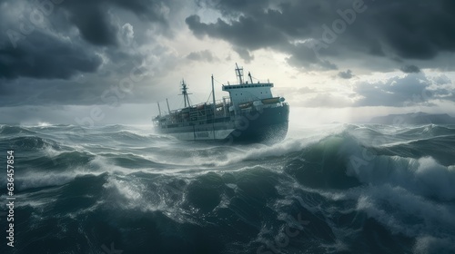 ship in the stormy sea. Generative AI