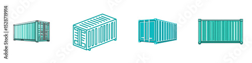 container, shipping, transportation, storage, freight, logistic, cargo, industrial, metallic, rectangular, green, stack, truck, warehouse, trade, export, import, intermodal, modular, construction