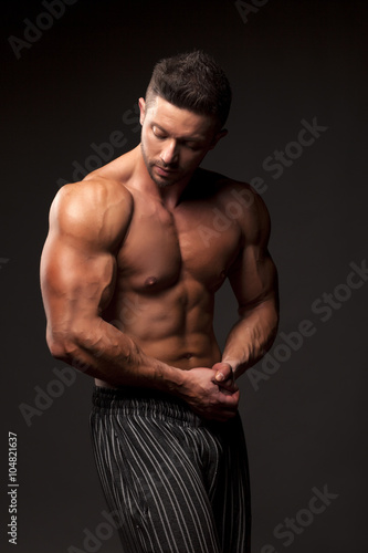 muscular, man, naked, pant, sexy, standing, grey background, bodybuilder, photogenic, fitness, posing, shoulder, young, male, isolated, body, adult, caucasian, fit, attractive, power, healthy, muscle, lifestyle, sport, athlete, torso, physical exercise, powerful, guy, athletic, strong, hand, arm, active, strength, model, muscle, man, chest