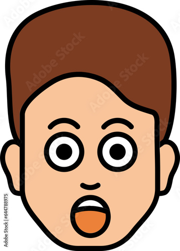 adult, amazed, avatar, behaviour, boy, brown, cartoon, character, emotion, expression, face, facial, feeling, icon, male, man, mouth, open, orange, person, portrait, shock, surprise, young