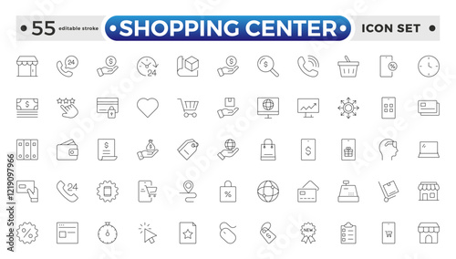 Shopping center outline icon. E-Commerce line icon set. e-commerce, mobile shop, digital marketing, business, sale, delivery and others. online payment price product. Editable stroke outline icon.