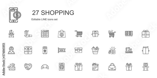 shopping, icon, set, vector, hand, bag, gift, gift, atm, product, new, online, shop, cart, elevator, mall, present, barcode, web, large, payment, symbol, illustration, signs, design, isolated, flat, outline, pictogram, line, element, background, object, graphic, business, box, thin, sale