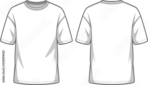 Short sleeve t-shirt flat sketch front and back view, blank fashion template, unisex crew neck tee outline, vector apparel technical drawing design.