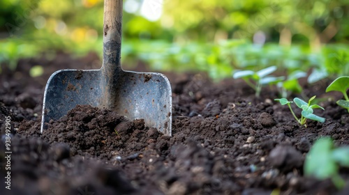 garden, shovel, tool, dirt, dirtied, spring, germinating, growth, plant, germ bud, green, nature, organic, farming, agriculture, gardening, ground, fresh, earth, cultivation, planting, landscape, closeup, macro, background, texture, farm, field, rural, vegetable, leaf, stem, life, environment, natural, new, begin, start, equipment, closeup, brown, black, summer, fall, autumn, harvest, work