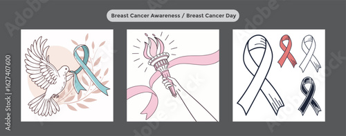 Show your support with these breast cancer awareness designs featuring dove, torch, and ribbons symbolizing hope and solidarity during this important cause