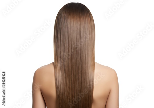 woman, posing, straight, brown, hair, shoulder, bare, back, rear, studio, shot, 1, person, caucasian, female, coiffure, length, long, portrait, beauty, young, adult, clean, white, background, skin, tone, healthy, care, fashion, style, view, isolated, model, product, display, appearance, promotion, advertising