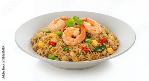 Shrimp Fried Rice in White Bowl on White Background