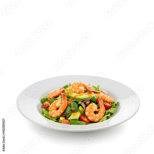 shrimp, salad, plate, food, lettuce, tomatoes, avocado, onion, dish, meal, white, with, isolated, area, art, design, digital, modern, creative, conceptual, professional, detailed, artistic, illustration, graphic, visual, colourful, decorative, minimalist