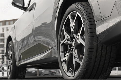 tire, car, perspective, vehicle, wheel, road, transportation, detail, design, rubber, drive, transport, automotive, journey, auto, speed, automobile, black, driving, racked, outside, photo, surface, texture, modern, urban, street, angle, adventure, rim, tyre, performance, truck, colours, ground, outdoors, safety, tread, weather, lifestyle, low, track, exploration, trip, technology, alloy, luxury, new