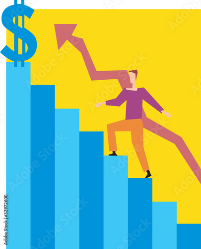 concept, conceptual, man, one person, climb, adult, dollar, currency, symbol, signs, finance, money, investment, market, stock, trade, economy, arrow, direction, rise, increase, up, growth, graph, graphical, upward, move, stair, step, american currency, us currency, dollar symbol, yellow, action, ascend, motion, toward, business, faceless, art, male, climbing, financial, trading