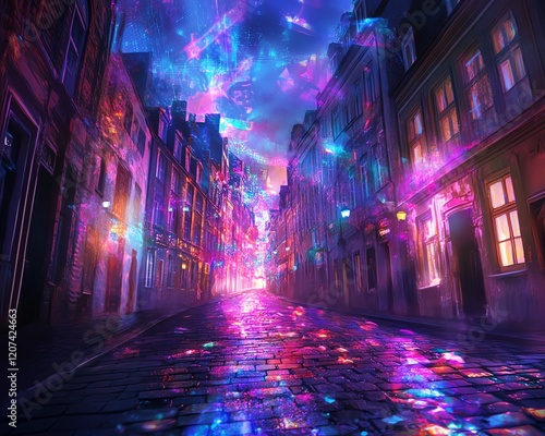 city landscape, architecture, light, side, view, whimsical, vibrant, neon, plaster bandage, colourful, cobbled, fantastical, fantasy, geometry, residential, creative, dreamlike, landscape, brightness, night time, city, metropolis, design, expression, technique, archway, artistic, innovative, modern, beauty, visual, illumination, aethereal, aesthetic, streetscape, urban, perspective, art, skyline, dynamic, imaginative, essence, atmosphere, environment, cinematic, surreal